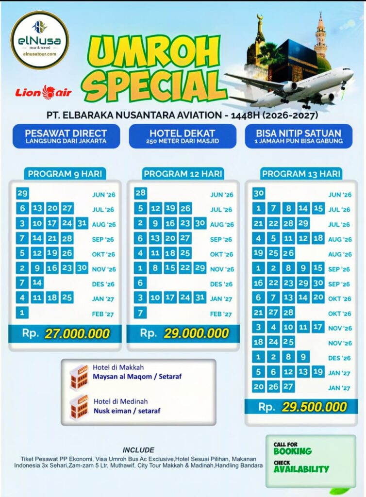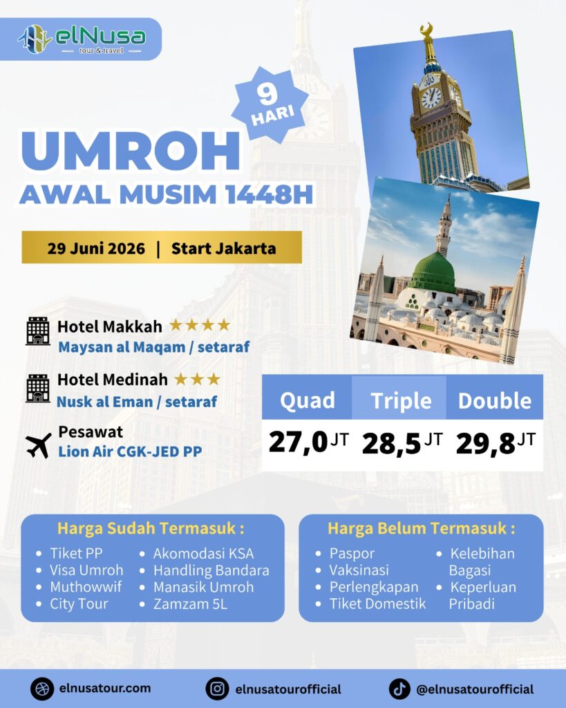 - elNusa Tour memberikan biaya Umroh yang hemat dan terjangkau, tapi tetap dengan fasilitas yang Nyaman